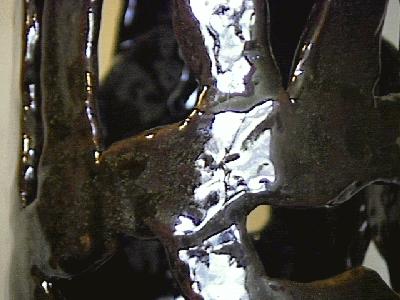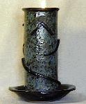 NOTE: I had an opportunity to burn the candle and test the design of this piece. The test did work out as planned but with a surprise! As the candle burned liquid wax did form and when it reached an opening in the clay the wax poured out and followed the clay channels as expected, however there was a problem. When the wax poured out the length of the candle wick grew dramatically shooting a flame out the top of the clay sculpture! It did turn out to be quite a conversation piece. I think it may work as a planter for ivy?