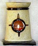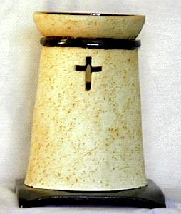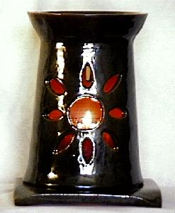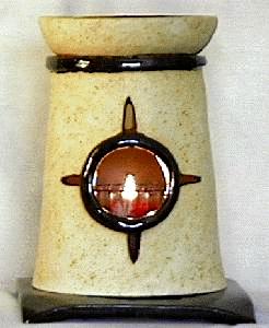 Each fragrance burner is hand made and shaped from soft clay. These are not casts from molds. Each piece is signed and is an original.The fragrance burners are designed to be used with fragrant oils or wax. The fragrance is added to the bowl at the top of the burner and a candle is placed within the burner.