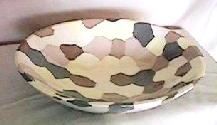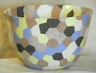 The varicolor bowls are a new technique that I am really enjoying. The clay is colored by hand using various oxides. This gives a uniform base clay. Bowls are made by piecing together the various colors of clay to form the bowl.This is a labor intensive art form, but I think it is worth the time and trouble. The designs go from the inside of the bowl through the wall of the bowl and to the outside of the bowl. The contrast between the color patches of clay is dramatic.
