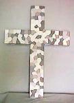 The cross is constructed of white, black, yellow, red, pink and brown clay.
