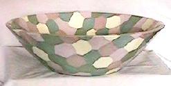 The bowl is constructed of white, yellow, coral, brown, light green, green and black clay.